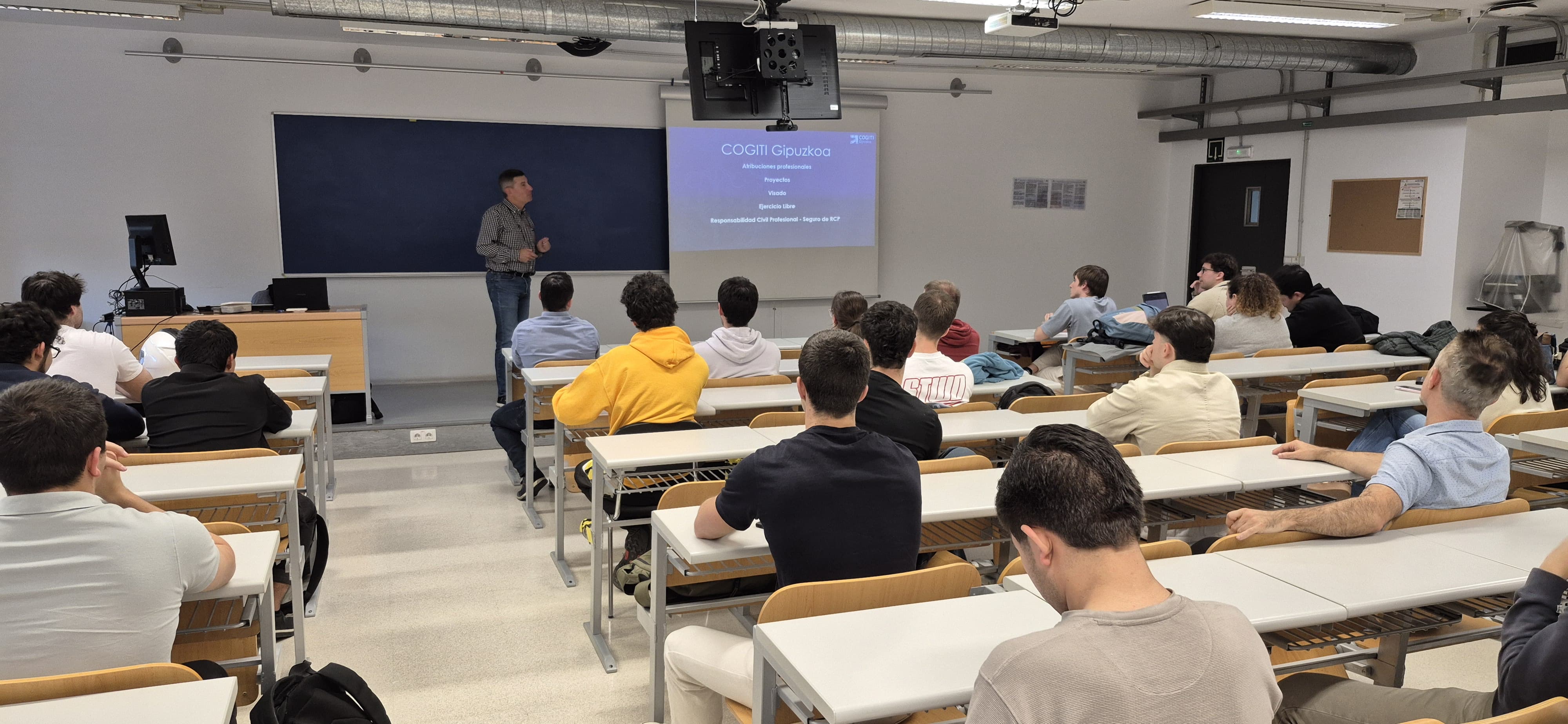 Durante las últimas semanas, el Colegio ha participado activamente en diversos actos organizados por la Escuela de Ingeniería de Gipuzkoa, reforzando así la estrecha colaboración que mantenemos con el ámbito universitario y con los futuros profesionales de la ingeniería.